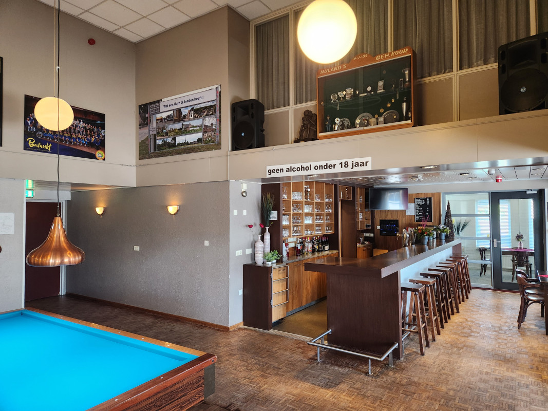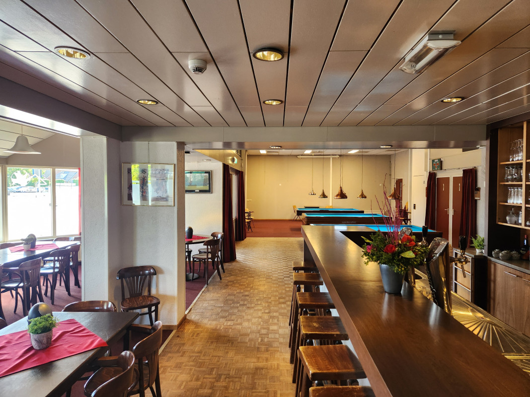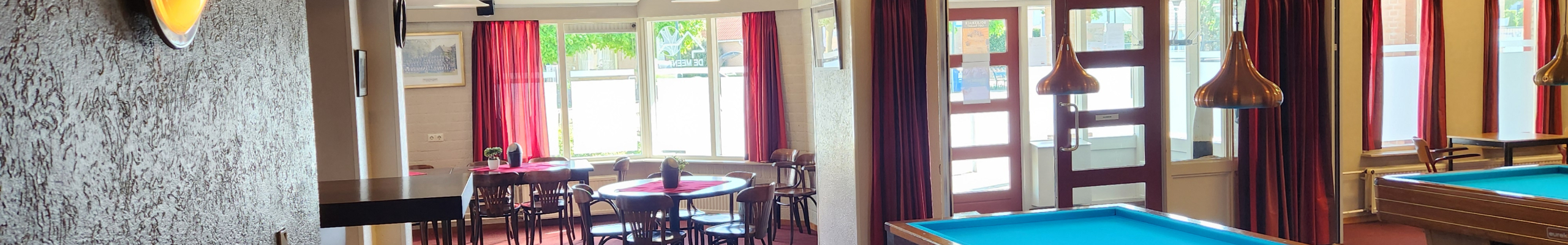 Aan de voorzijde van Gemeenschapshuis De Meent vind je Café De Hoeve – een sfeervolle ontmoetingsplek met een eigen ingang aan het Prins Bernhardplein. De ruimte is ingericht met een gezellige bar, diverse zitjes en drie verrijdbare biljarts. Dagelijks wordt het café gebruikt door bezoekers van De Meent om samen koffie te drinken of na te borrelen na hun activiteiten.