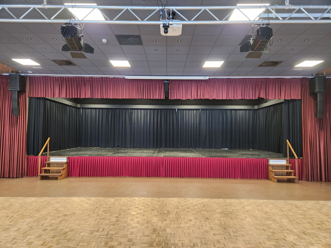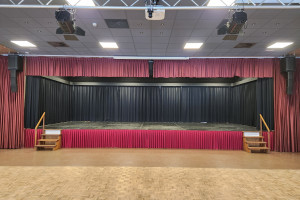 De zaal beschikt over een royaal podium van 11 meter breed en 5 meter diep, opgebouwd uit losse podiumdelen. De standaardhoogte is 80 cm, maar het podium kan ook (deels) worden verlaagd naar 40 cm of 20 cm. Naar wens kunnen er achterdoeken, coulissen, friezen en een voorgordijn worden geplaatst.
